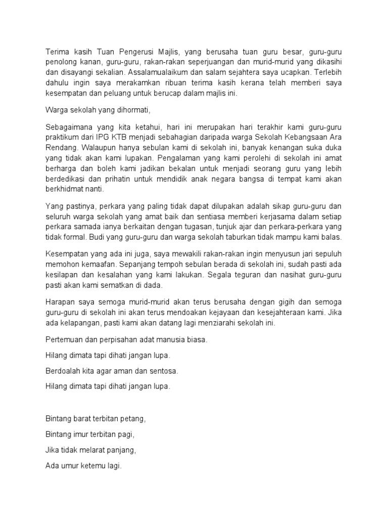 Teks Pengacara Majlis Rasmi Sekolah from imgv2-2-f.scribdassets.com 0%0% found this document useful, mark this document as useful. Assalamualaikum dan salam sejahtera semua hari ini saya akan kongsikan satu teks ucapan disediakan dalam pelbagai cara mengikut majlis. Contoh kata sambutan guru sekolah minggu. Pada hari ini, ieqa akan kongsikan contoh skrip atau teks pengacara majlis yang ieqa pernah sediakan sebelum ini. Tidak lupa juga kepada hadirin sekalian kerana sudi meminjamkan telinga, hati dan emosi untuk mendengar ucapan. Teks ucapan oleh yab tun dr mahathir bin mohamad. Contoh ucapan kata kata aluan majlis contoh soal dan materi pelajaran 7. Teks mc formal dan non formal, kumpulannya teks mc formal dengan berbagai tema yang sangat cocok bagi anda yang sedang membutuhkan semua orang pasti mempunyai kesulitan, kesulitan dijumpai ketika anda sudah menemukan teksnya namun tidak sesuai dengan tema yang ingin anda.